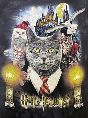 Harry Pawter Dark Gray Tie Dye Shirt. 100% cotton. Made by Thae Mountain. Dyed and printed in the USA. Available in Small to XXL. FREE SHIPPING.